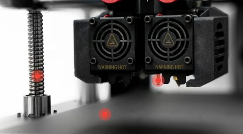 针对医疗场景中的具体痛点,复志科技(Raise3D)提供了从硬件设备到软件生态的完整解决方案。其旗下的Pro3系列工业级3D打印机,可同时满足生产制造与多尺寸快速原型开发需求,具备高精度与全天候稳定运行的性能。该系列设备搭载了双喷头技术,这一设计在医疗应用中具有独特价值,两个喷头可以同步打印同一模型的对称部件,将生产效率提升近一倍。