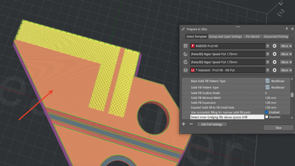 - 提高在高速打印下,模型内部的实心填充的打印效果,减少模板所需要的实心填充层数